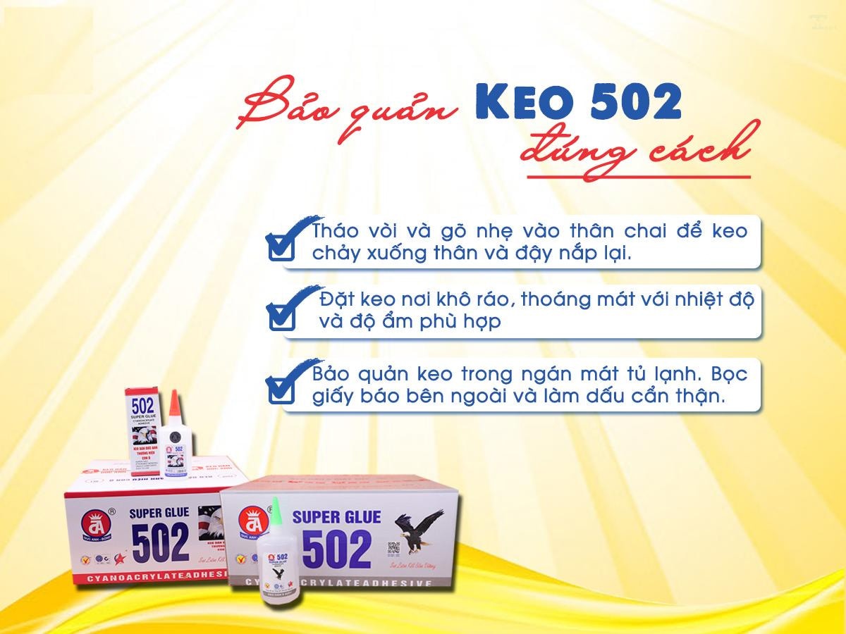 Là một loại keo dán nhanh, mạnh nếu không bảo quản đúng cách, Keo 502 sẽ bị khô và mất tác dụng. Để tránh lãng phí và kéo dài tuổi thọ của keo 502, bạn có thể áp dụng những cách bảo quản keo 502 sau đây: