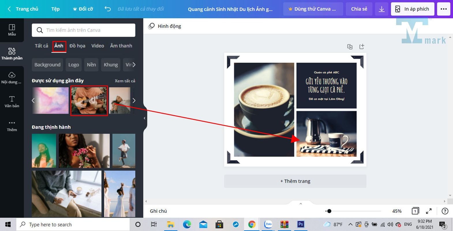 Bước 4: Điều chỉnh kích thước và vị trí của ảnh được chèn