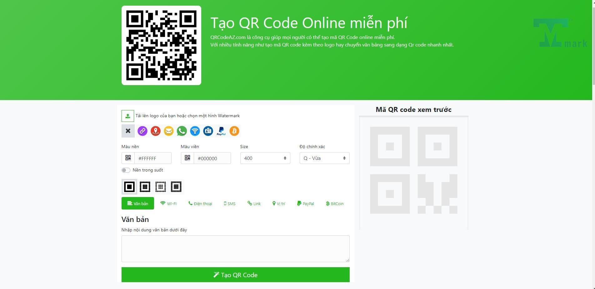 QRCode là một trang web Việt Nam cho phép bạn tạo mã QR Code cá nhân theo ý muốn. Bạn có thể chọn màu sắc, kích thước, logo hay hình nền cho mã QR Code của mình. Bạn cũng có thể tạo mã QR Code động để có thể thay đổi thông tin sau khi đã tạo. Bạn chỉ cần nhập thông tin vào ô “Nội dung”, chọn các tùy chọn mong muốn và nhấn nút “Tạo”. Sau đó, bạn có thể xem trước, tải xuống hay chia sẻ mã QR Code của mình.